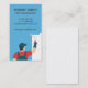 An illustration of a painter in red top and denim blue overalls painting blue on the wall with a roller brush. Perfect for those providing painting services! Personalize easily with your business details in the text templates provided. Business card in vertical alignment. Horizontal alignment is also available.