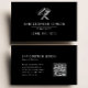 Help your painting business stand out from the crowd with this bold, eye-catching black and silver business card. The silver faux brushed metal logo of a crossed paint roller and paint brush is paired with silver gray text to highlight your business name, contact information and other details. A QR code on the back takes customers and clients to your website.