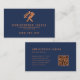 Help your painting business stand out from the crowd with this bold, eye-catching navy blue and copper business card. The copper faux foil logo of a crossed paint roller and paint brush is paired with copper-colored text to highlight your business name, contact information and other details. A QR code on the back takes customers and clients to your website.