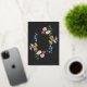 Stunning moody wedding save the date announcements featuring a frame overlaid with bold watercolor dutch flowers in blue, white, pink and yellow on a charcoal background. Personalize with your details in gold foil and add your photo to the reverse.