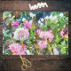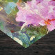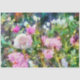 I love a garden full of dahlias in the late summer and early fall, with their vivid shapes and colors. This artwork features pink and white dahlias in the foreground, with orange and white dahlias in the background. I applied impressionisitic and bumpy canvas filter effects so the image looks a bit more like a painting. If your or your recipient is a cottagecore fan or loves a late summer garden, this might be a great way to wrap up a gift or enhance tissue paper decoupage crafts.