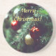 Painterly Merry Christmas Tree with Red Ornaments Coaster