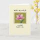 This card features a large pink flower centered like a treasured keepsake, with petals opening in a way that feels like a gentle embrace ❤️. Inside the bloom, small white, deep pink, and golden yellow accents draw the eye, like two close friends leaning in to share a quiet moment. Fine lines on the petals add depth and texture, giving the flower a soft, lifelike presence. The flower sits within a muted olive-green rectangle, creating a calm, earthy setting that makes the pink tones stand out. A warm brown, slightly rough-edged frame outlines the green panel, adding a cozy, rustic touch that feels welcoming. Around this centerpiece is a roomy creamy off-white background, keeping the layout airy and easy to take in 🌼. Short lines of dark lettering appear above and below the central panel, centered on the page, with the top line smaller and the bottom line slightly longer. The border is a warm brown outline with gently uneven edges surrounding the olive-green rectangle.