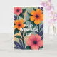 Designed with a lush spread of large painted blossoms, this card front feels like a gentle garden scene made for closeness and care ❤️. Coral-pink and marigold-orange flowers fill most of the space, nestled among broad deep green leaves and a few slim purple fronds that curl like they’re leaning in toward each other. Soft, diffused light seems to glow from within the petals, keeping shadows faint and giving the whole arrangement a calm, affectionate mood. Centered in the floral cluster is the message “Happy Mother’s Day Dat,” set in rounded white lettering that stands out clearly against the saturated colors. The words sit comfortably in the open space between blooms, as if the flowers are framing the message like an embrace 🌼. Behind everything, a lightly textured wash of muted sage green mixed with warm cream keeps the background quiet and dreamy without pulling attention from the bouquet. Each flower has a dark center disk dotted with tiny yellow specks, adding crisp detail against the soft brushy petals.