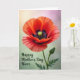 Designed with a large red flower as the main focus, the image shows ruffled petals in warm reds and oranges opening wide like a gentle embrace ❤️. Near the center, a dark, almost black ring of tiny stamens frames a bright lime-green seed pod, creating a striking contrast that draws your eye in. The background is softly blurred, fading from peach on the upper left into lavender-pink on the upper right, then settling into a calm green near the bottom. A slim green stem rises beside the bloom, holding a small unopened bud that leans close, like a quiet companion in the scene. In the lower-left area, the message “Happy Mother’s Day Niece” appears in dark green, flowing lettering that sits neatly against the lighter backdrop. The soft lighting makes the petals look slightly translucent, with delicate edges and gentle shadows that add depth. A few darker green leaves and the slender stem cut upward through the pastel haze, while the bud rests just off to the side beneath the main flower 🌼.