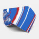 NEW! Random hand painted brush strokes make up this original painterly striped necktie. A three color textile design. A ocean blue ground with red and white.