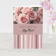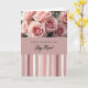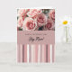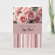 This greeting card features a floral design arranged in three horizontal sections, with the top showing a close-up of soft blush and rose-colored blooms whose gently unfurling petals suggest a tender, affectionate mood ❤️. One central flower is shown in sharp detail with a velvety, spiral-like center, while nearby blossoms fade slightly out of focus like a quiet moment shared between close friends. A soft light falls across the petals, bringing out smooth and slightly ruffled textures in pale pink tones. Across the middle runs a wide, muted rose-pink band that holds the main message, placed centered and easy to read. The text is set in two contrasting styles—one crisp and modern and the other flowing—both in a light color that stands out clearly against the pink background 🌼. The bottom section is filled with irregular vertical stripes that look brush-painted, mixing creamy off-white, pale rose, deeper mauve, and dusty purple. The striped area spans the full width, with uneven line edges and gentle color shifts that create a layered, painterly finish.