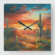 Painting Of A Colorful Desert Sunset Painting Square Wall Clock