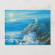 Painting Of A Full Moon Over A Lighthouse Postcard