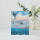 Painting Of A Seagull Flying Near A Lighthouse Postcard