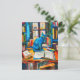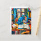 painting of Cat Among Open Books Postcard