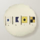 Painting of Four Flags with Sail Written Beneath Round Pillow