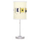 The lamp looks exactly like the picture, bright and colorful. The lamp shade is plastic not what I expected, however I love it! The printing is clear and the name can easily be read.
