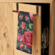 Pair of Cardinals Amid Vibrant Roses Kitchen Towel