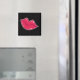 A pair of shining red lips with a a little sparkle and a purple and yellow outline.