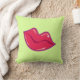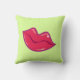 A pair of shining red lips with a a little sparkle and a purple and yellow outline. Subtle white highlights give it a shiny look. Lime green background.