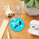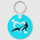 Pairs figure skaters on turquoise background performing the "death spiral". Also includes white heart designs.