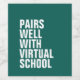 VIrtual learning during a pandemic isn't really funny but this wine label is. When you're at home and want to send something funny to a friend, this wine label that says "pairs well with virtual school" on a teal background is perfect for both parents and teachers. The text and color are editable so you can make it say whatever you want!