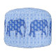 Mixed media digital graphic of an elephant against an arabesque tiled background - cobalt blue with a white, lacy, paisley pattern