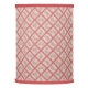 It was quick delivery, sooner than expected. This lampshade is exactly as described and the perfect size for my lamp. I replaced the old bell shape lampshade with this barrel shape and it allows me to place my lamp closer to the wall. I love the soft colors of this lamp shade and the modern-southwest design. In the evening, the light is a cream color. I am very happy with this lampshade and highly recommend this product. (Pardon the quality of my photos for this review.)