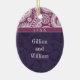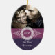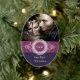 Commemorate your first Christmas together with an ornament that is a little out of the ordinary. The words "Our First Christmas" print against a lovely paisley pattern watermarked against dark amethyst on this Christmas tree ornament. An ornate frame calls attention to a monogram with a photo of the happy couple above. The reverse reveals the couple's names and date or any special message. Available in alternate colors with matching products.