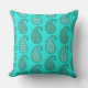 Outdoor pillow in an ornate paisley pattern, in light aqua and teal on a turquoise / peacock background
