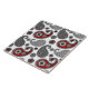 Ornate paisley pattern in black, white and shades of gray / grey, accented with deep red, on a white background
