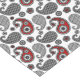 Ornate paisley pattern in black, white and shades of gray / grey, accented with deep red, on a white background