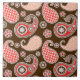 Ornate paisley pattern in shades of light to deep coral pink, accented with white, on a dark chocolate brown background