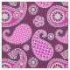 Ornate paisley pattern in shades of fuchsia pink and orchid, accented with white, on a deep amethyst purple background
