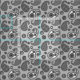 Fabric in an ornate paisley pattern in shades of medium to dark gray, black and white, on a medium silver gray background