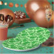 Paper plates in an ornate paisley pattern in shades of chartreuse to deep emerald green on a pastel lime green background