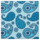 Fabric in an ornate paisley pattern in shades of light sky blue to deep cobalt blue on a soft ice blue background