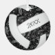 This cute volleyball themed ornament features the realistic image of a volleyball that has black and white panels and a delicate doodle pattern of paislies, flowers and feathers in white overlying the black panels - personalize with her name on the front, year on the back - by katz_d_zynes