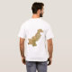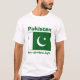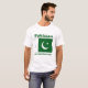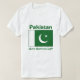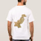 An editable title and slogan accompanies the white crescent and star on a green background with a white band at the hoist of the Pakistani flag on the front of this t-shirt. The back displays a detailed map of Pakistan.