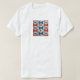 The shirt is good quality and fits just fine, but the colors of the printing are not as bright as in the sample photo. Not the best. The colors are a lot brighter in the sample photo; when I received the shirt they appeared faded. The red looks a little more pink and the blue is a lot lighter. N.B. I did not wash the shirt yet.