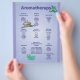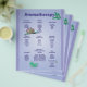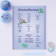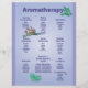 A simple yet lovely pale blue chart with all kinds of aromatherapy hints listed on a flyer. It tells you what aromas and essential oils to use for insomnia, insects stings and bites, depression, and six others. Includes basil, lemon, bergamot, tea tree, cinnamon, and many more. We offer this as a flyer, postcard and greeting card, so you can send it to your clients, and as a full sized poster. You choose if you want to frame it or not.