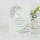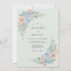 Delicate watercolor blooms in soft blues, dusty pinks, and peach hues create a tender, romantic atmosphere. Lush greenery enhances the gentle floral arrangement, evoking a serene and classic mood. This artistic floral display sets an elegant tone.