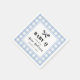 A pattern of soft, French blue gingham plaid frames custom text on this personalized, paper cocktail napkin. Easily edit all text and you can even change the background color.