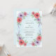 This design features a soft wash of sky blue as the backdrop for a variety of botanical elements. Hand-painted red roses and purple anemones cluster along the edges, accented by delicate sprigs of lavender and verdant green foliage. The watercolor style creates a romantic and airy aesthetic perfect for a seasonal springtime event.