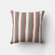 This throw pillow design features a pale goldenrod, red, gray, white, and maroon colored striped pattern.