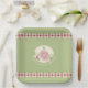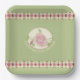 Pale Green and Pink Floral Accented Square Paper Plates