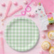 Pale Green Gingham Check Paper Plates