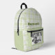 Pale Green Gingham Plaid Pattern Name and Photo Printed Backpack