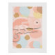 This print features a whimsical, pale peach chameleon against a soft, light-toned background. The color palette is gentle and ethereal, with abstract shapes in muted shades of pale pink, light blue, and sandy golden-brown scattered throughout. The layered, paper-cut style of the art creates a sense of depth and a clean, modern esthetic. This design is perfect for those who appreciate soft, neutral colors with a playful, artistic twist. Create a twin set with "Blue-gray Chameleon."