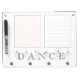 Keep "en pointe" and on track with all of your appointments, dance recitals and homework assignments. Pink ballerinas pose around the word "dance" at the bottom of the board and there are two separate sections for you to write in: a very pale pink section and one with lines.