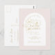 Pale Pink | Boho Arch Gold Floral Wedding Postcard