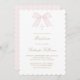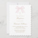 Plain white envelopes are included with paper invitations and will come to fit the invitation size you select. If you don’t need the envelopes, you may choose to not receive them by selecting the dropdown below "Envelopes" and choosing "None." If you’d like to have a design on your envelopes, you can browse all of these available envelopes to find the design that complements your Pale Pink Bow Baptism Invitation.