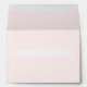 Stylish custom invitation envelope done using a plain white paper stock. An delicate pale pink colors the outside and also lines the inside. Personalize the return address, on the back flap, and chose your size envelope for an elegant way to finish off your wedding invitations and RSVP cards.