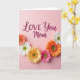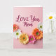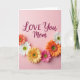 This card features a soft, pale pink background that sets a gentle, affectionate tone ❤️. Near the upper center, the words “LOVE You Mom” appear in deep magenta lettering, with “LOVE” larger and “You Mom” tucked just beneath it. The text sits open and airy above a half-circle border of daisy-like flowers that feels like a bouquet being offered up with care. The blossoms overlap slightly and vary in color—sunny yellow, bright white, warm orange, and rich fuchsia—creating a friendly, romantic warmth through their close, gathered arrangement. Each flower has petal details radiating from a textured green-yellow center, giving the garden look a lifelike touch. Soft lighting keeps shadows minimal, letting the pink backdrop stay smooth while the floral colors remain lively, like a fresh spring morning 🌼. Along the lower portion, the flowers form a neat semicircle that frames the bottom edge with alternating blooms and small green accents.